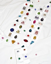 このシャツには、多種多様なラインストーンが施されており、それぞれのラインストーンが持つ特有の輝きがあなたのスタイルに華やかさを加えます。ラインストーンが散りばめられたデザインは、まるで華やかなジュエリーのように光り輝き、シンプルながらも存在感を放ちます。