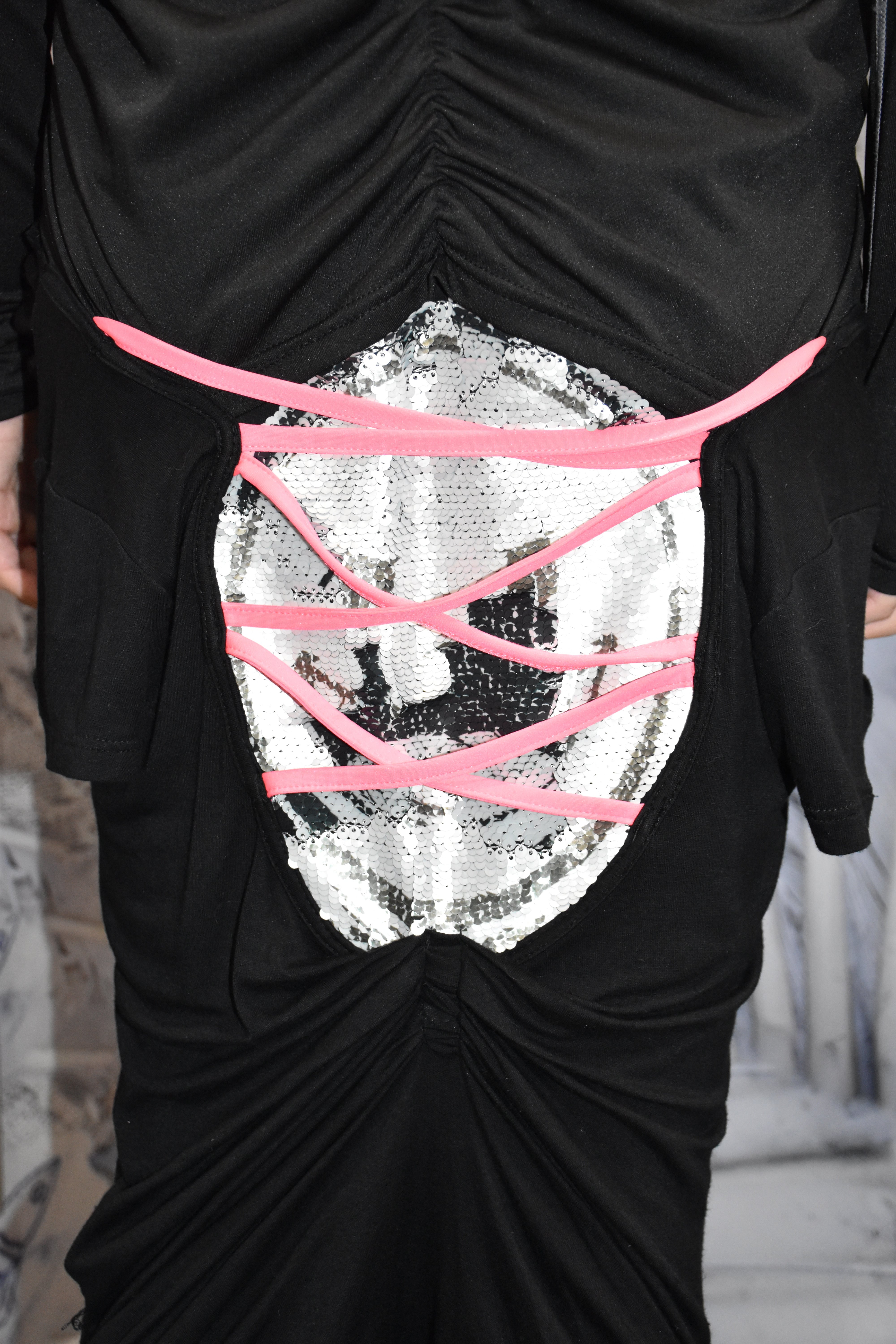 SORCERER はエストニアのクリエイティブ集団で、リサイクル素材を重視し、ユニークな作品や時には彫刻作品を作り、抽象的かつ装飾的に歪曲した(人間の)形状に対する本能的な態度に向き合うよう鑑賞者に促し、身体を覆うことについての新しい考え方を提示します。この工芸品は、着用者をSORCERER自身の世界観を反映した創造物に変身させます。