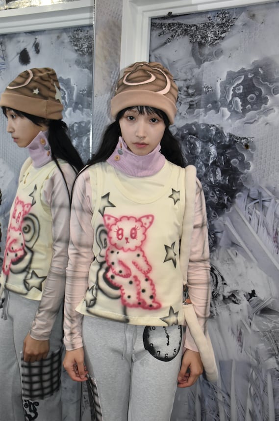 Auntie Poonsは、タイ生まれの地域に根ざしたアートウェアブランドです。糸、生地、そして記憶を通して、その魅力を語りかけます。タイの伝統とモダンで混沌としたエレガンスを融合させています。一つ一つの服はエアブラシで手作業で描かれ、愛情を込めて縫い上げられています。その縫製には、幼少期の記憶や個人的な物語、そして愛猫との静かな友情さえも彷彿とさせるものがあります。