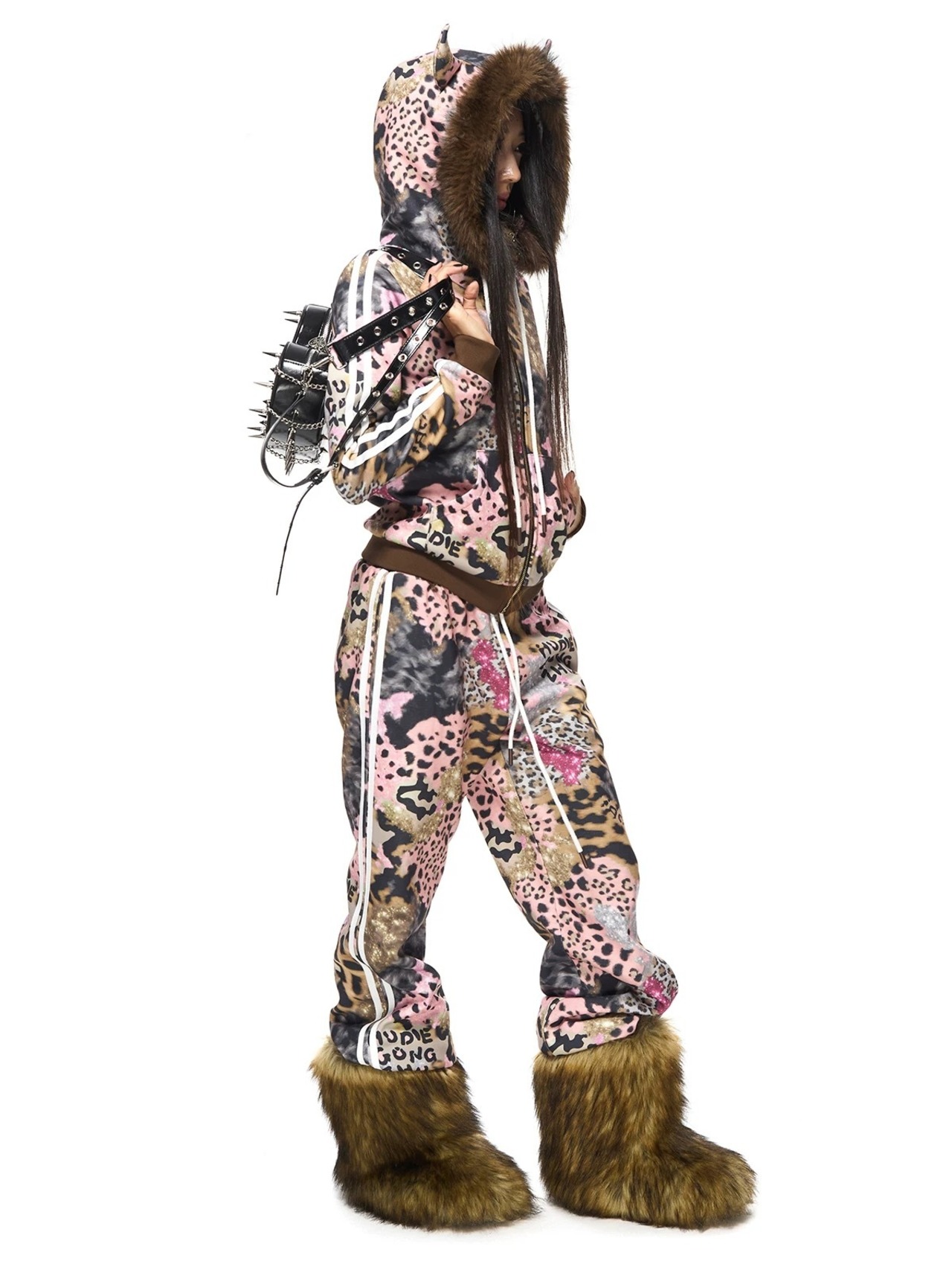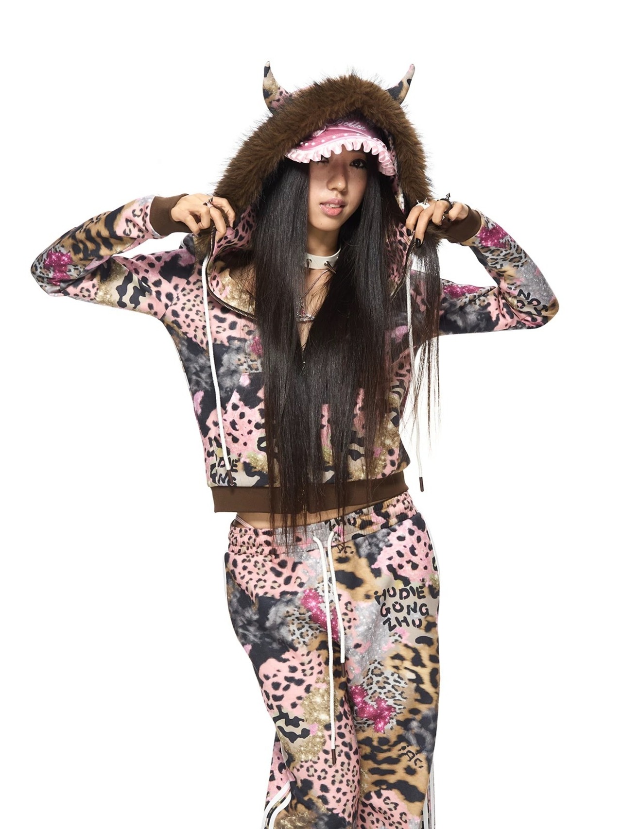 HUDIEGONGZHU - LEOPARD PRINT HOODIE ( BROWN )