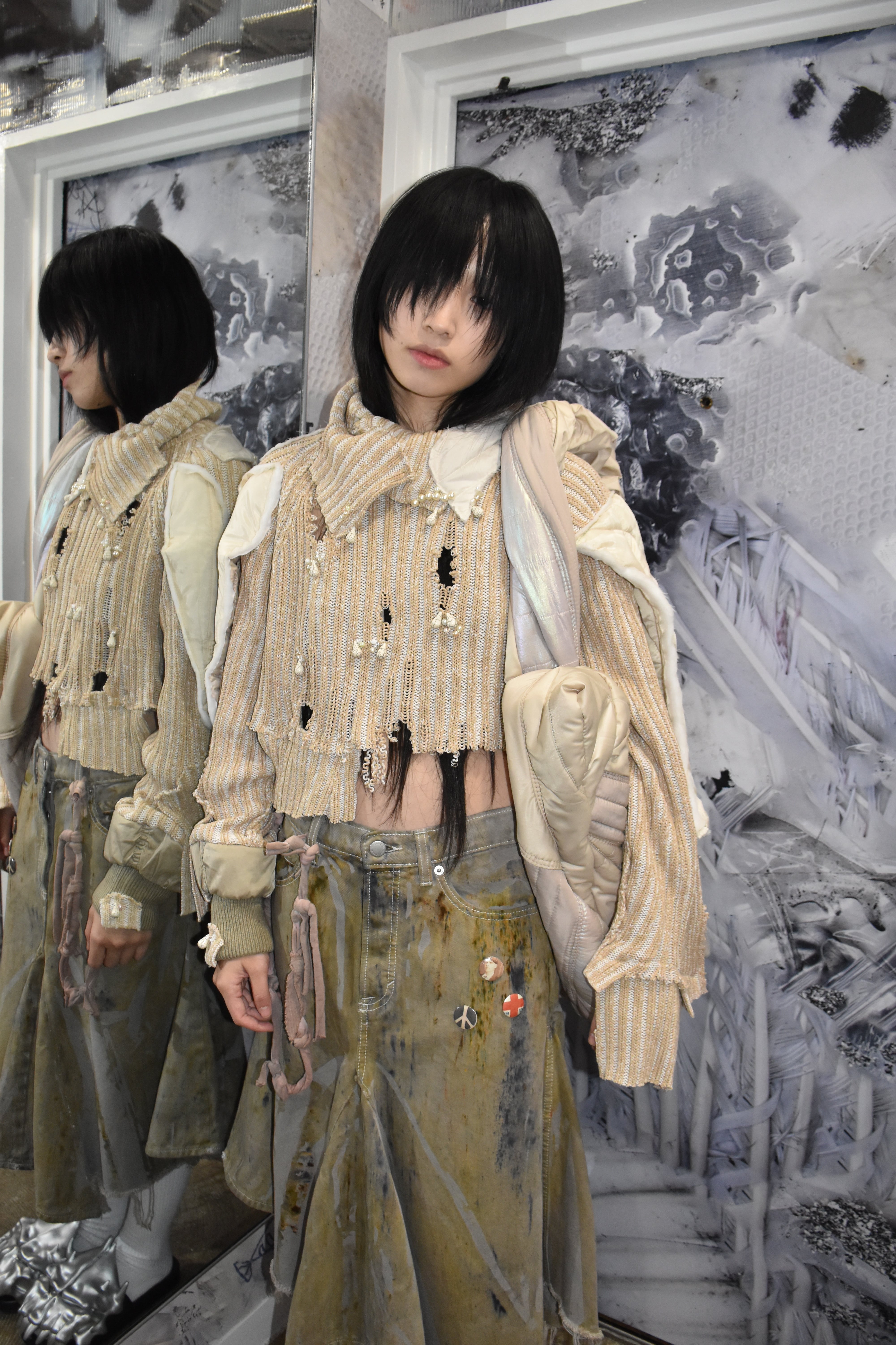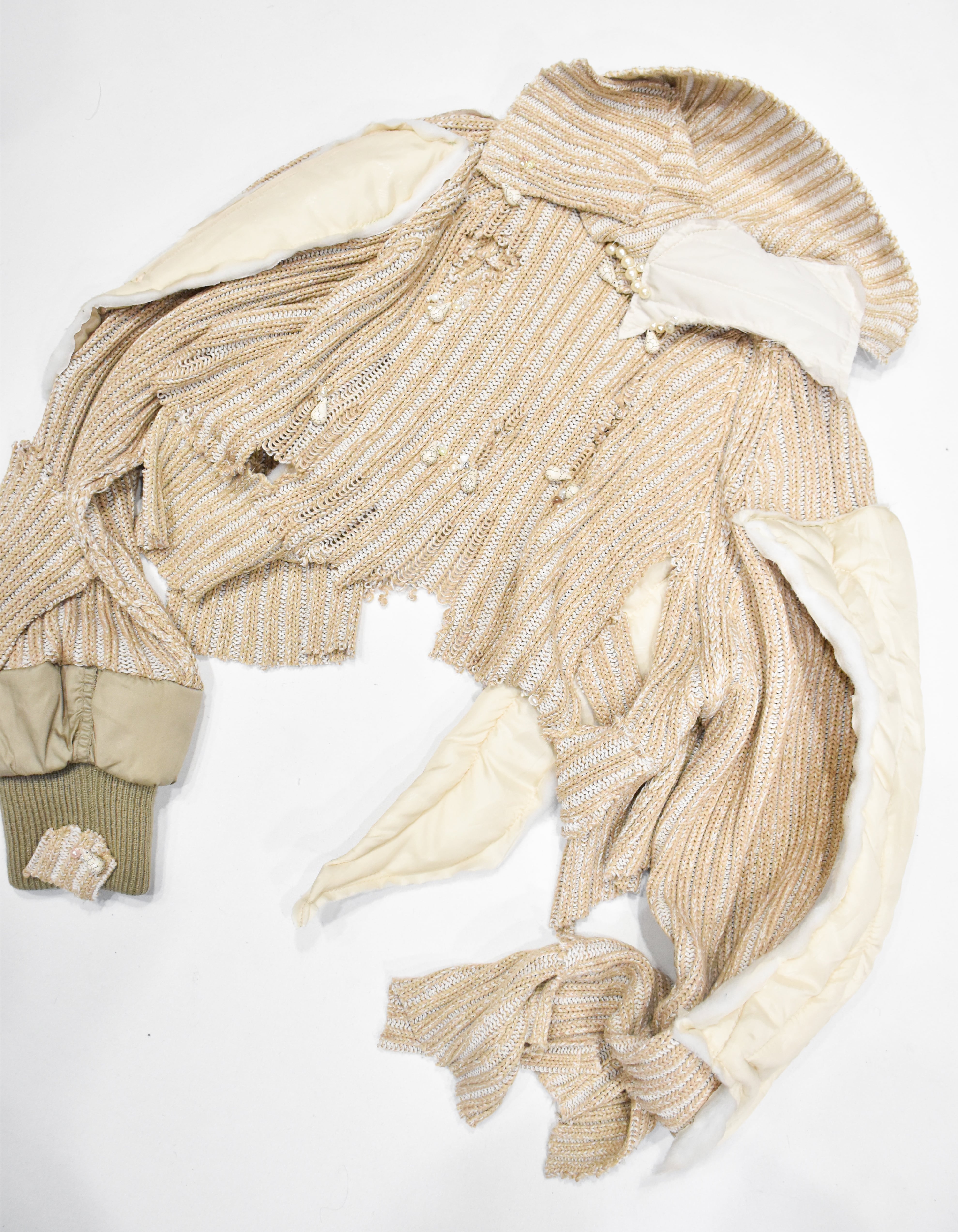 SORCERER はエストニアのクリエイティブ集団で、リサイクル素材を重視し、ユニークな作品や時には彫刻作品を作り、抽象的かつ装飾的に歪曲した(人間の)形状に対する本能的な態度に向き合うよう鑑賞者に促し、身体を覆うことについての新しい考え方を提示します。この工芸品は、着用者をSORCERER自身の世界観を反映した創造物に変身させます。
