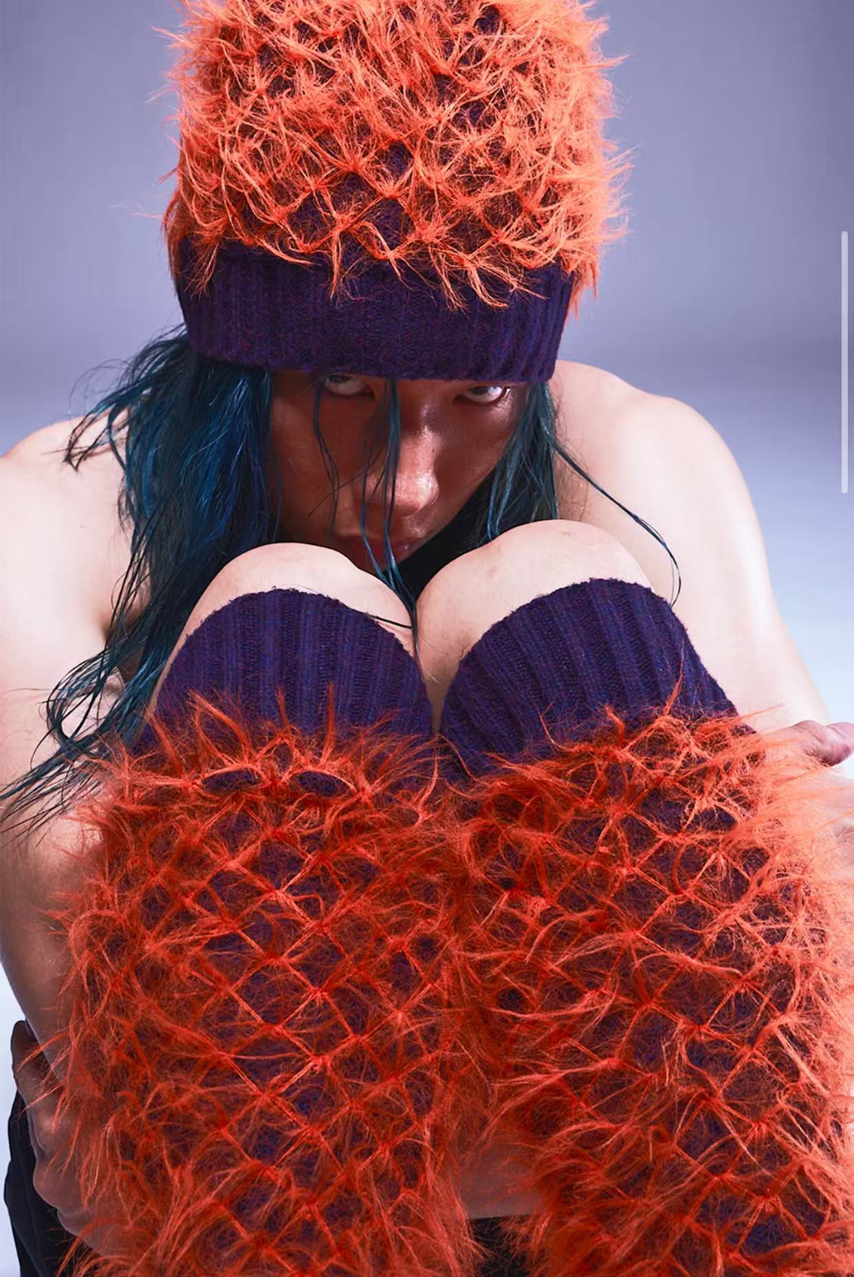 CHRISTIAN STONE - MOHAIR KNITTED INTERNET BEANIE ( ORANGE )