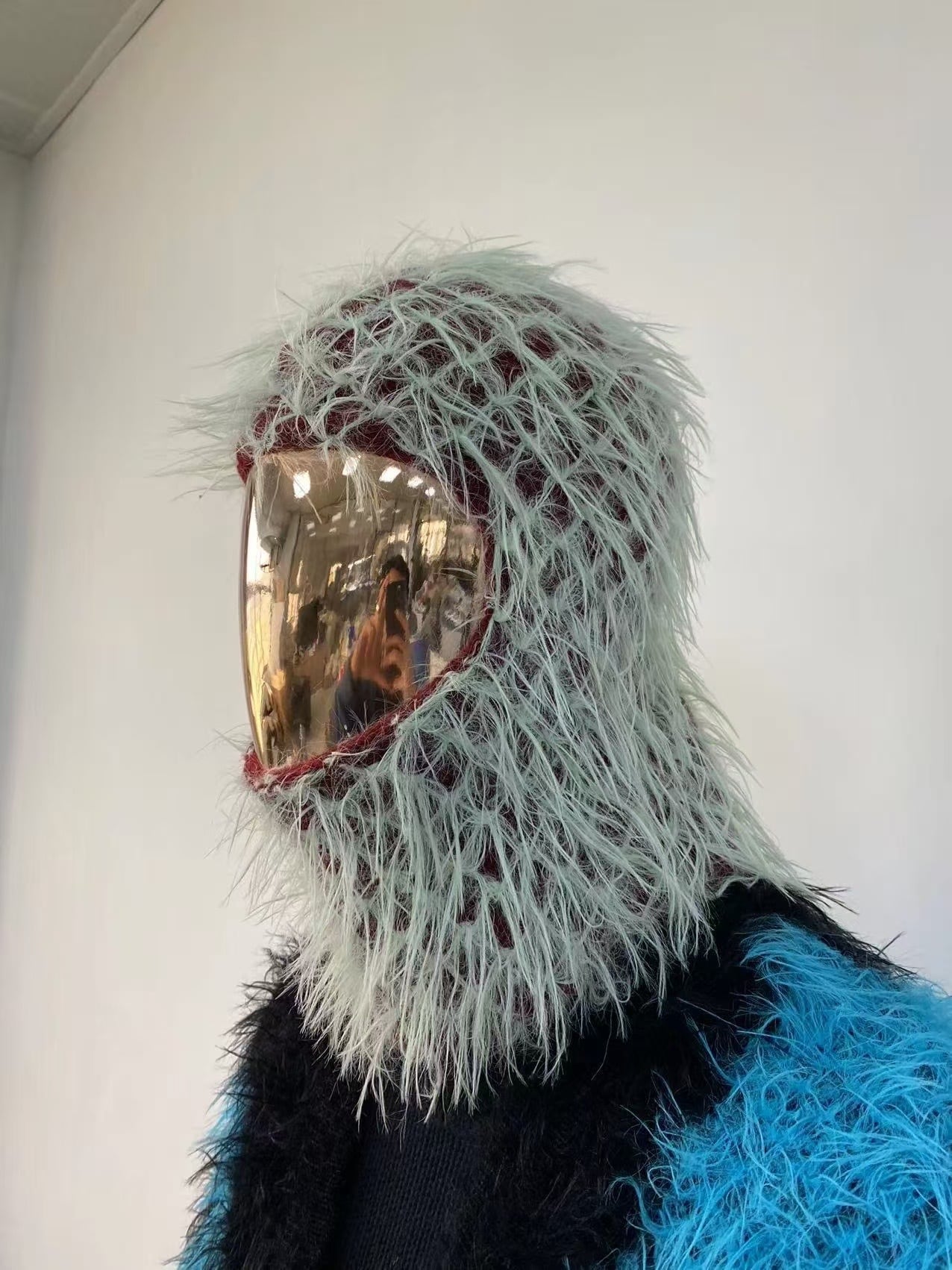 今回は表面に網目構造のモヘアをベースにしたバラクラバです。暖かく、柔らかい肌触りが特徴で、寒い季節にぴったりのアイテムです。さらにポイント的なアイテムになるので、おしゃれなスタイルを演出します。