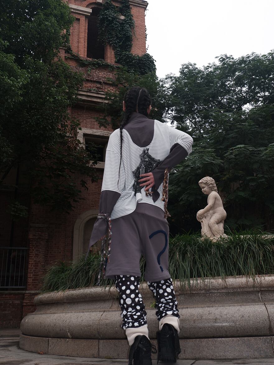 WRONGSOLUTION - BASKETBALL PILE-UPS LONG PANTS ( GREY / POLKA DOTS )