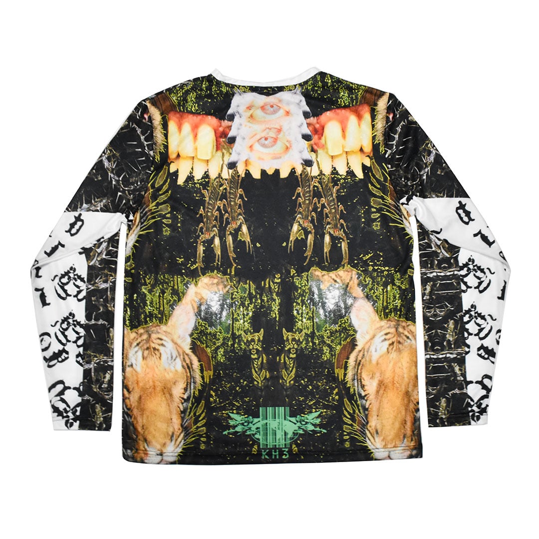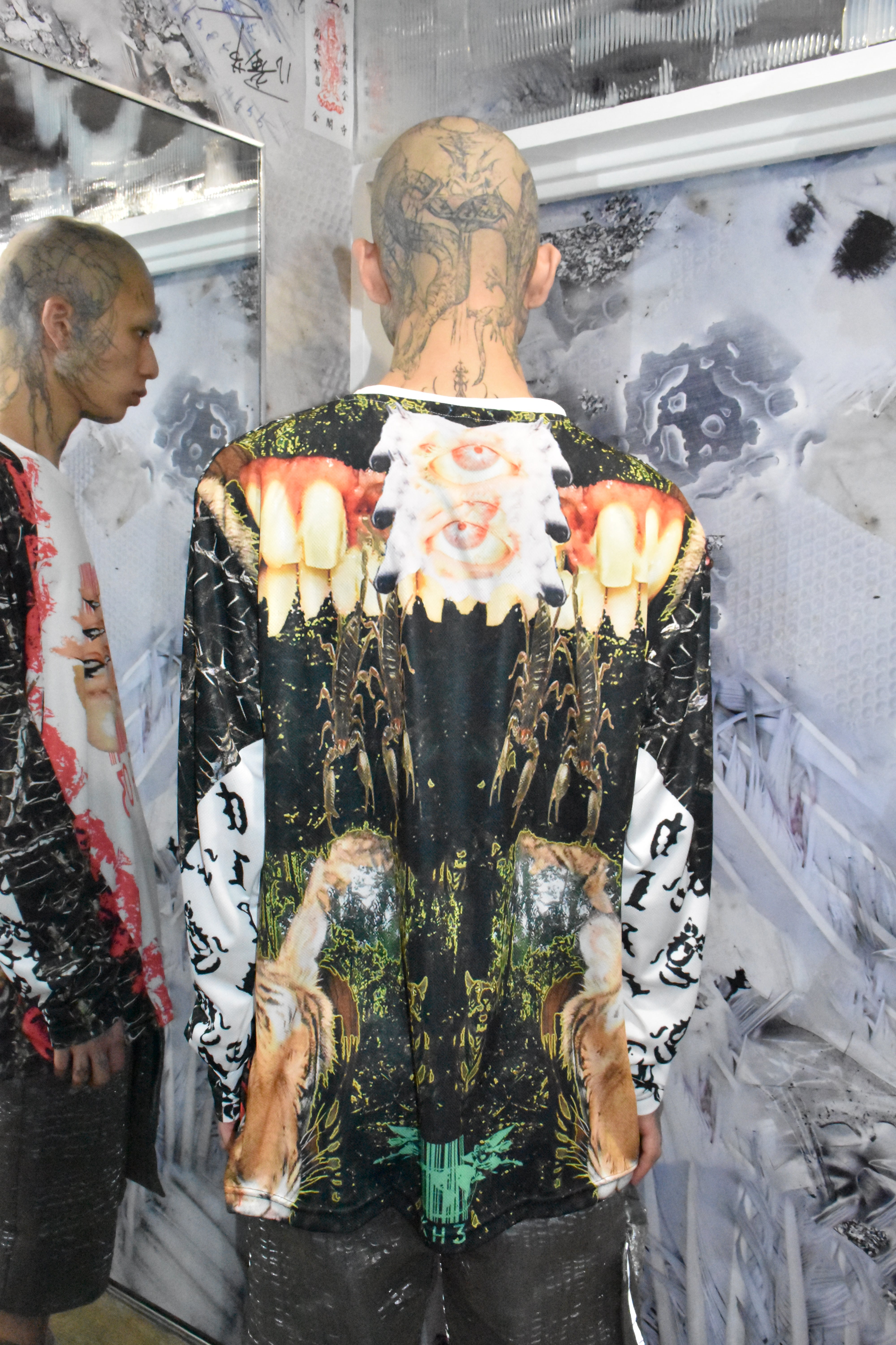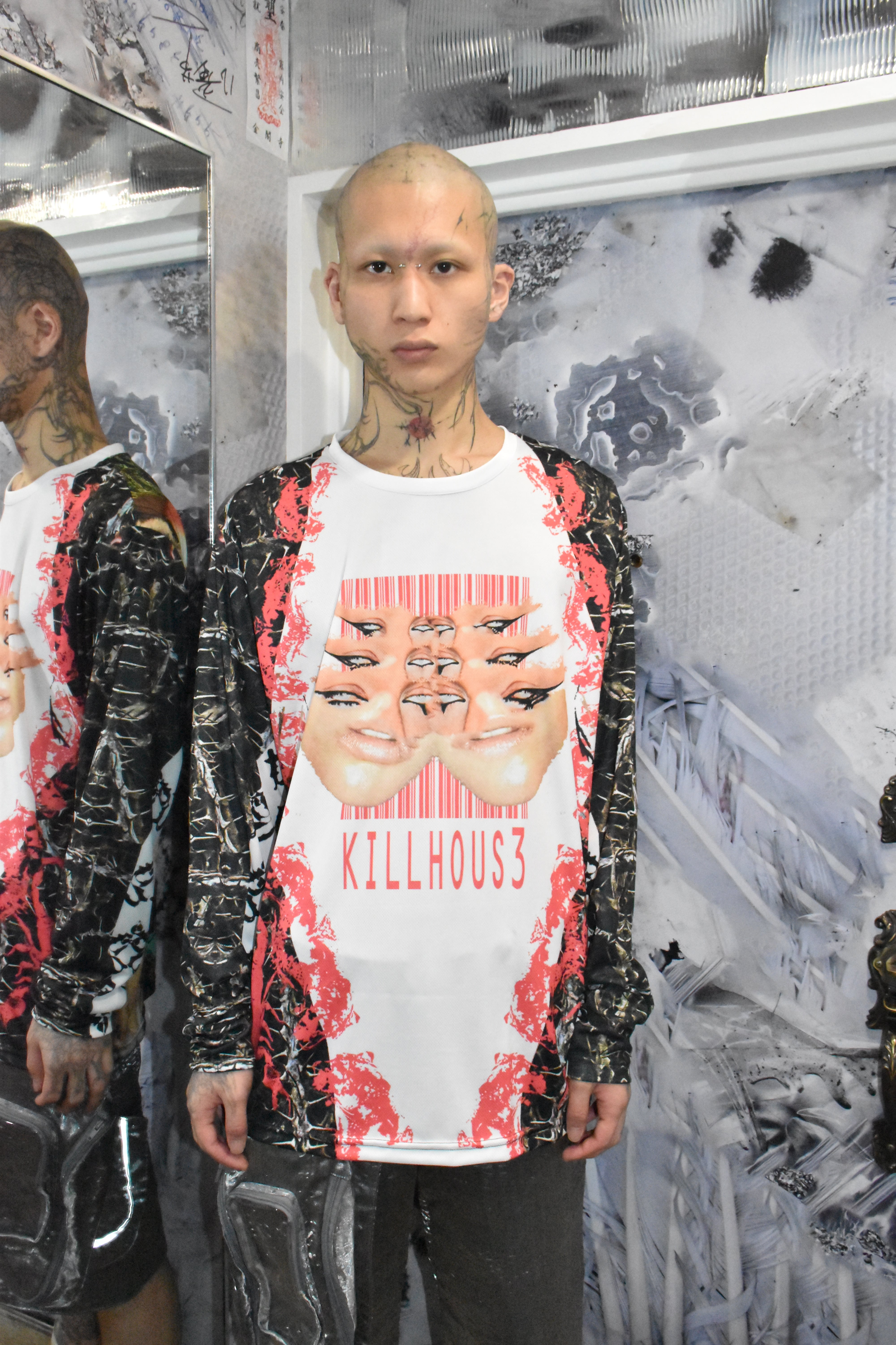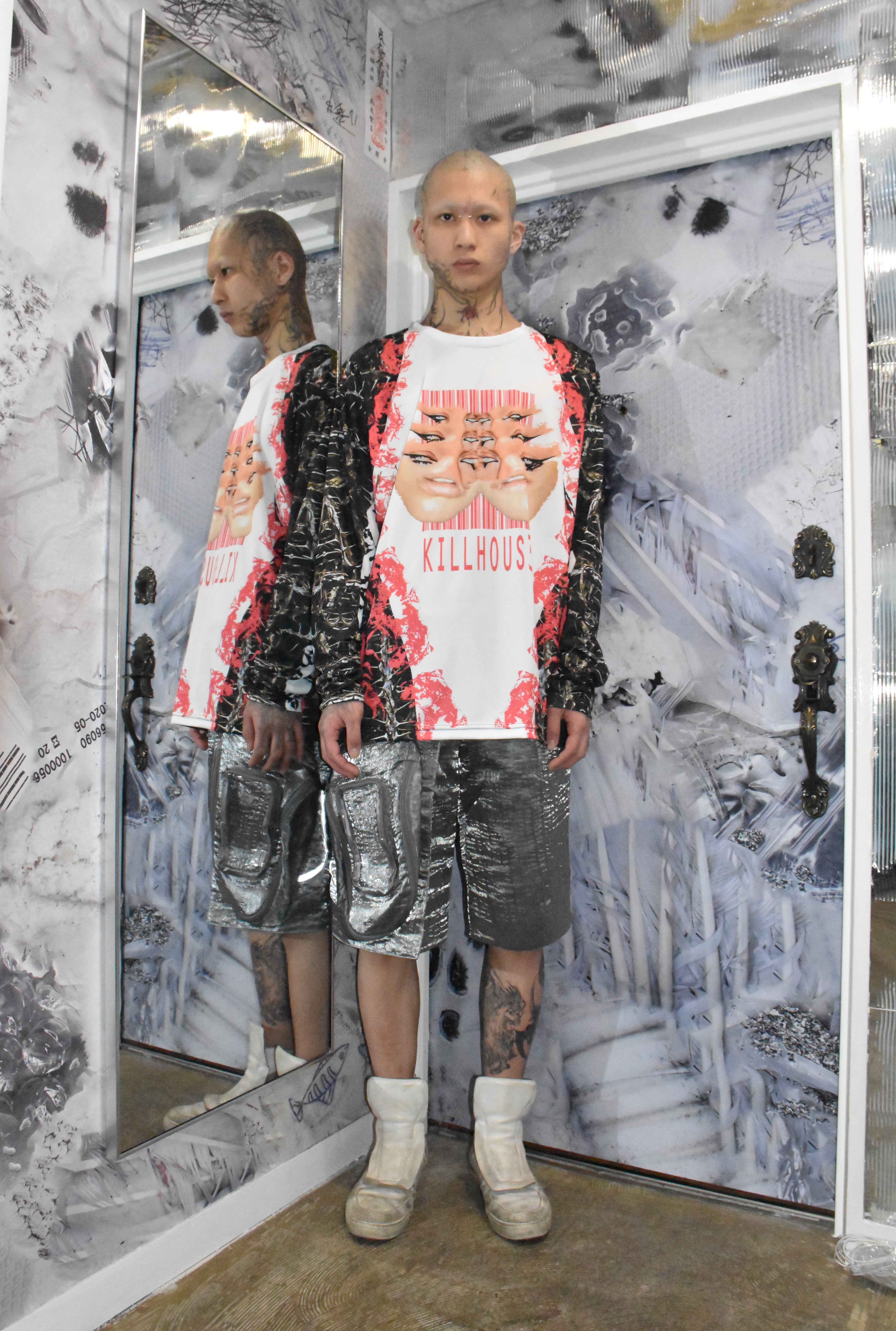Killhous3はロンドンで生まれたブランド。デザイナーはインド人です。崩壊の中で生まれた反応であり、偶然から持続へと変化した存在。服を通じて内面と外界の境界を解体し、個の独立と接続を提示する。死・再生・生の循環を内包し、暗闇の中でも消えない意志を可視化する。