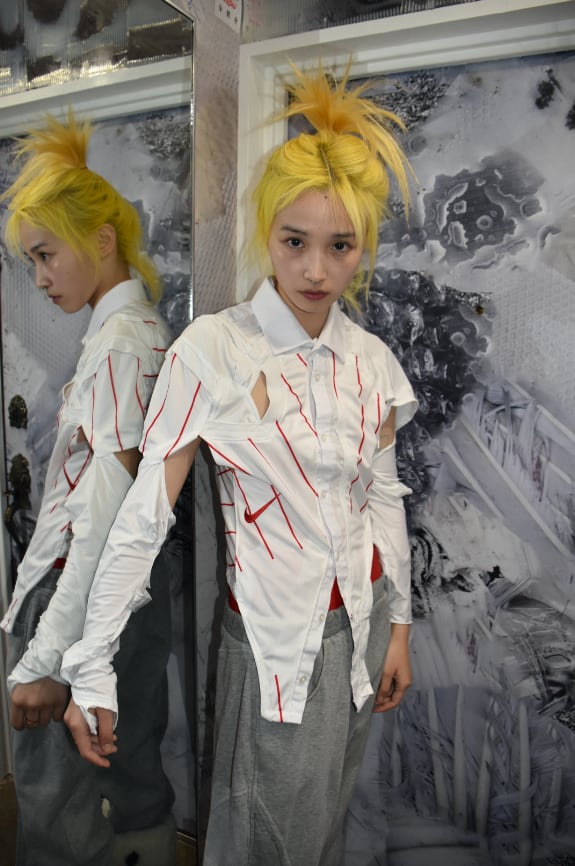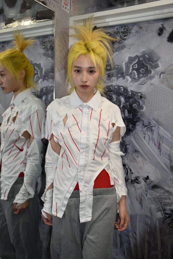 Alyssa Marie GroeneveldはAMGの創設者兼クリエイティブディレクター。ロッテルダムとアムステルダムで育ち、多様なカルチャーを融合。Central Saint Martins出身で、既存服を再構築する独自のドレーピング技法を確立。廃材や古着を新たなシルエットへと変換し、感情や物語を軸に作品を展開。内面的成長や精神性を反映し、音楽とスポーツから影響を受けた表現が特徴。