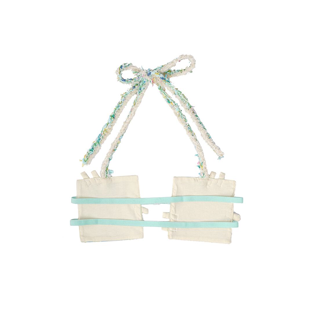 薄い緑色オリジナル刺繍弾力パッチBra、可愛らしい雰囲気、兎の刺繍とニットリボンの絶妙な組み合わせ。少し斜めの形で体のラインにぴったり。Tシャツやインナーの上などに着るのはおすすめ。