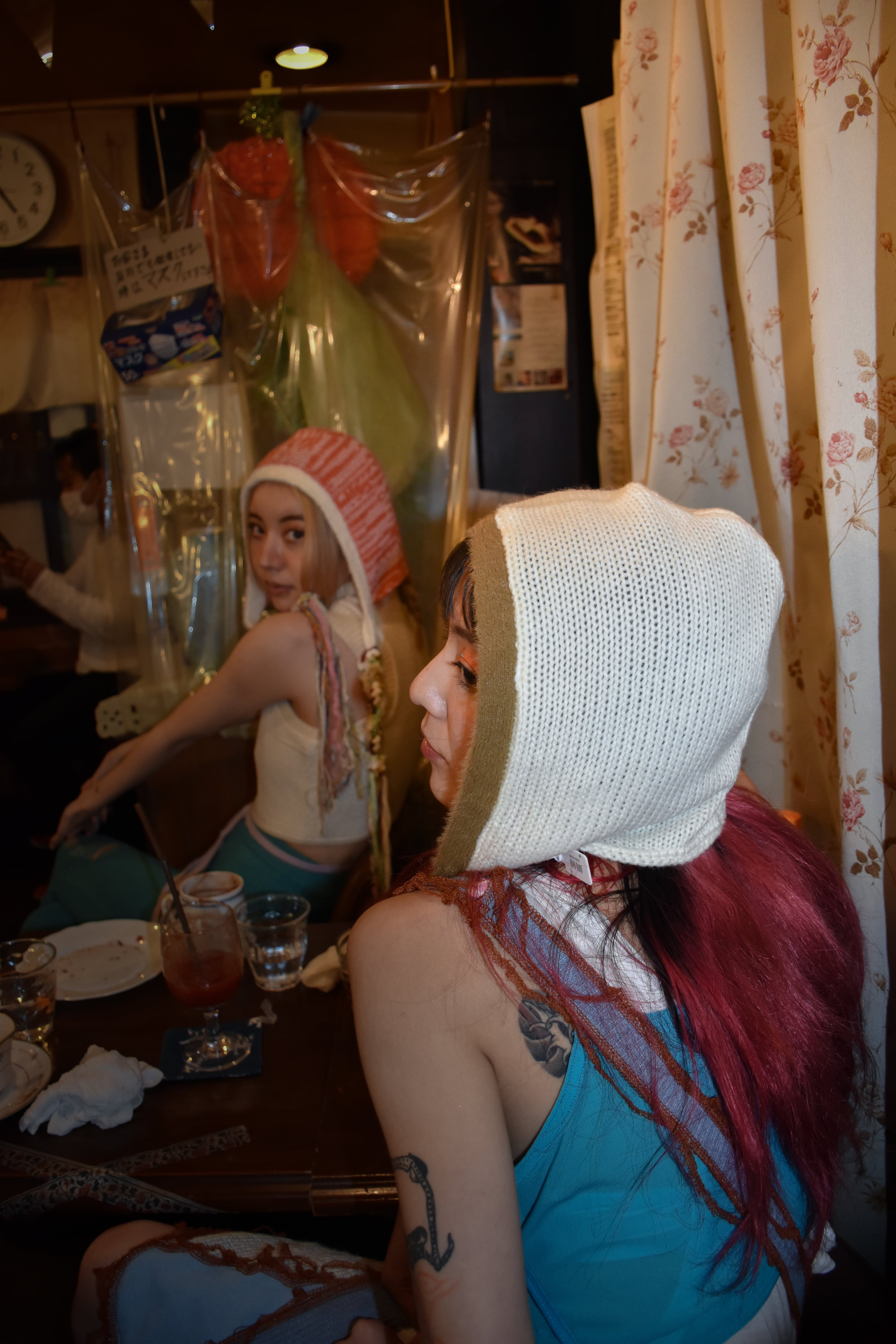 今回の手ずくり帽子はフリーサイズで、色とりどりの毛糸が組み合わされていて、帽子のヘリの生地がふわふわしています、可愛らしさが出やすく、冬におすすめです。