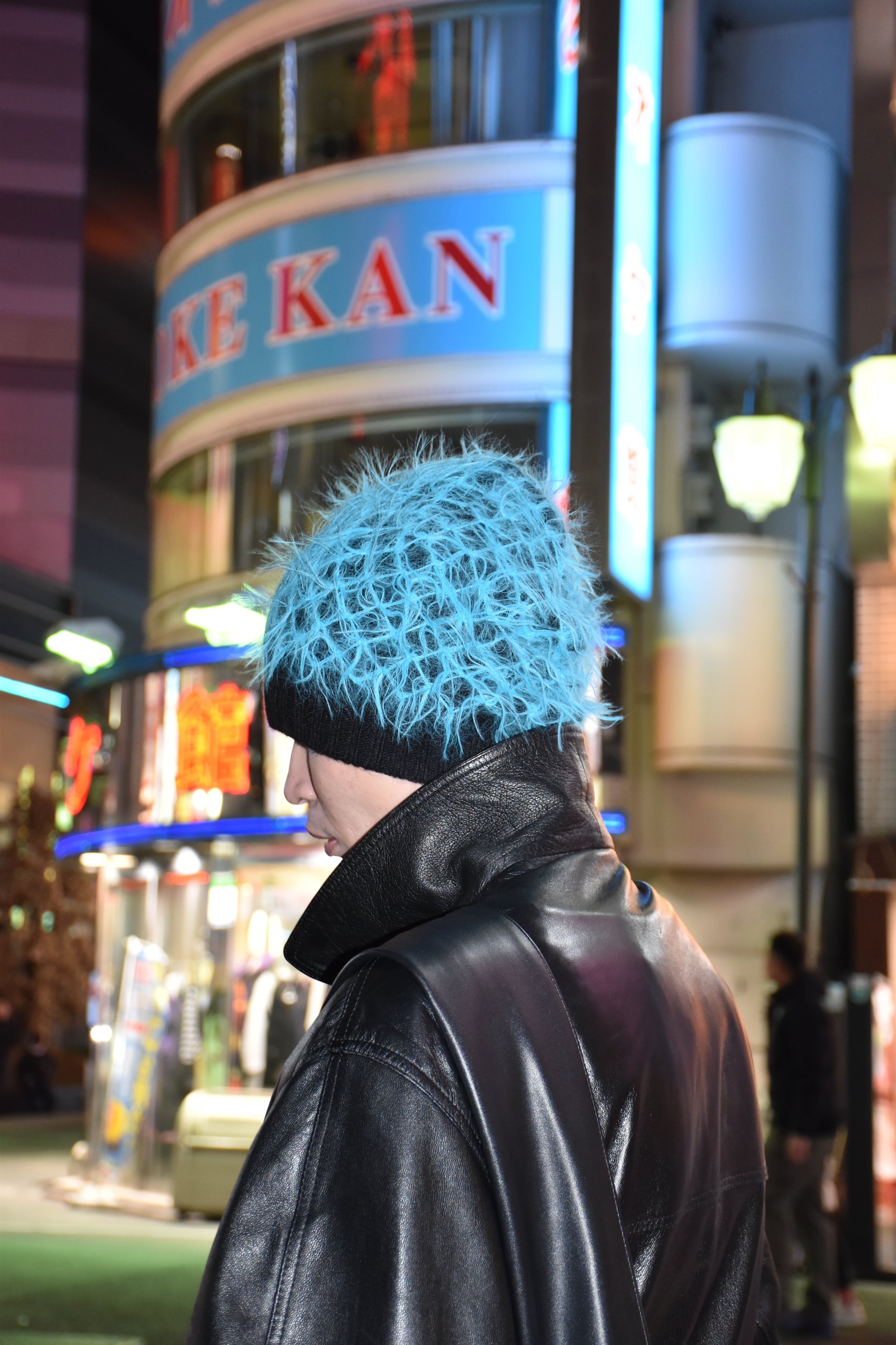 CHRISTIAN STONE - MOHAIR KNITTED INTERNET BEANIE ( BLUE )