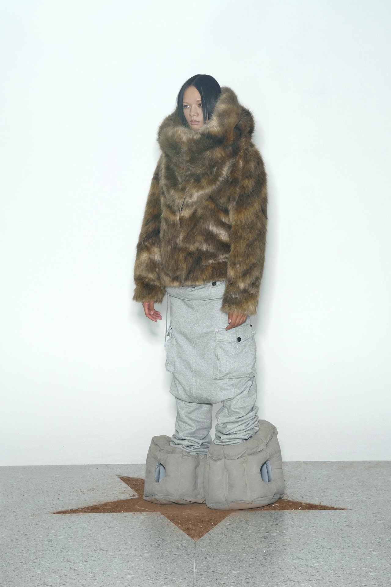 着こなし方3:ナショナルネックカラーのフード付きファージャケットを着る