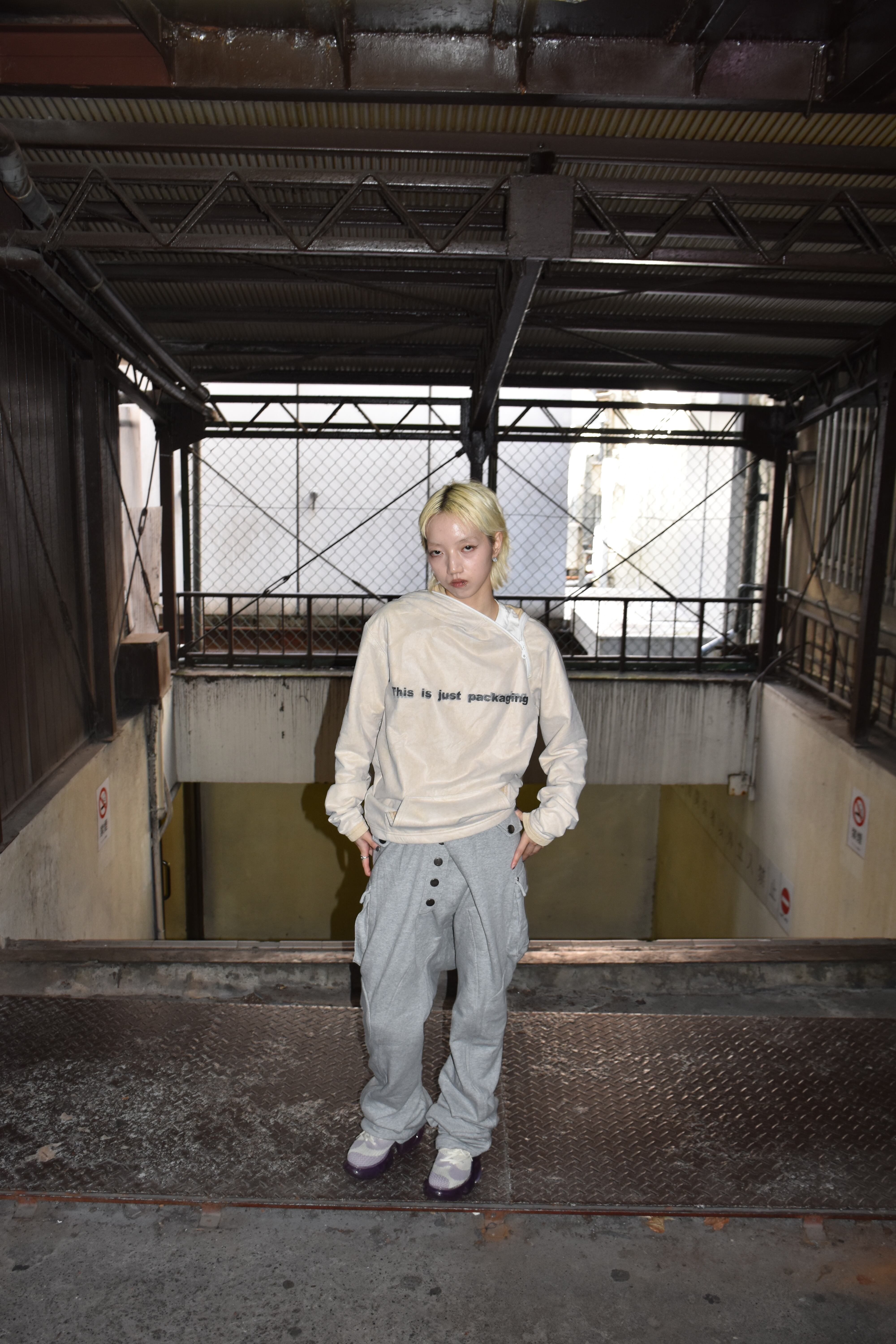 TE.COM - DECONSTRUCTED WORKWEAR BAGGY PANTS WITH DROPPED CROTCH (LIGHT GREY)
